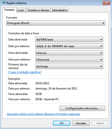 1)Vá em menu iniciar> painel de controle> relógio, idioma e região: